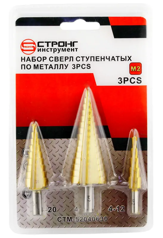 Набор сверел «СТРОНГ» по металлу ступенчатых СТМ-520 Titan, d4-12/4-20/4-32мм, 3шт. СТМ-520