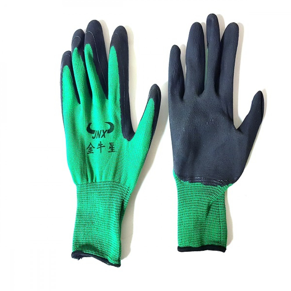 Перчатки нейлоновые с нитриловым обливом (салатово-чёрные) 02178 (уп.12шт)