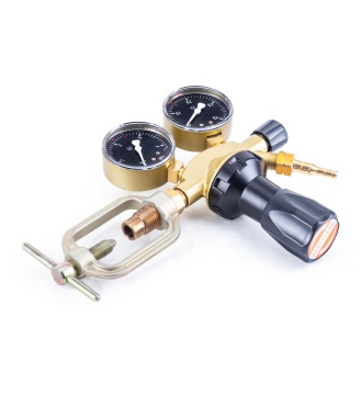 Газовый редуктор с двумя манометрами позволяет контролировать давление. Первый манометр показывает повышенное давление на входе из баллона, второй контролирует пониженное рабочеее давление на выходе.