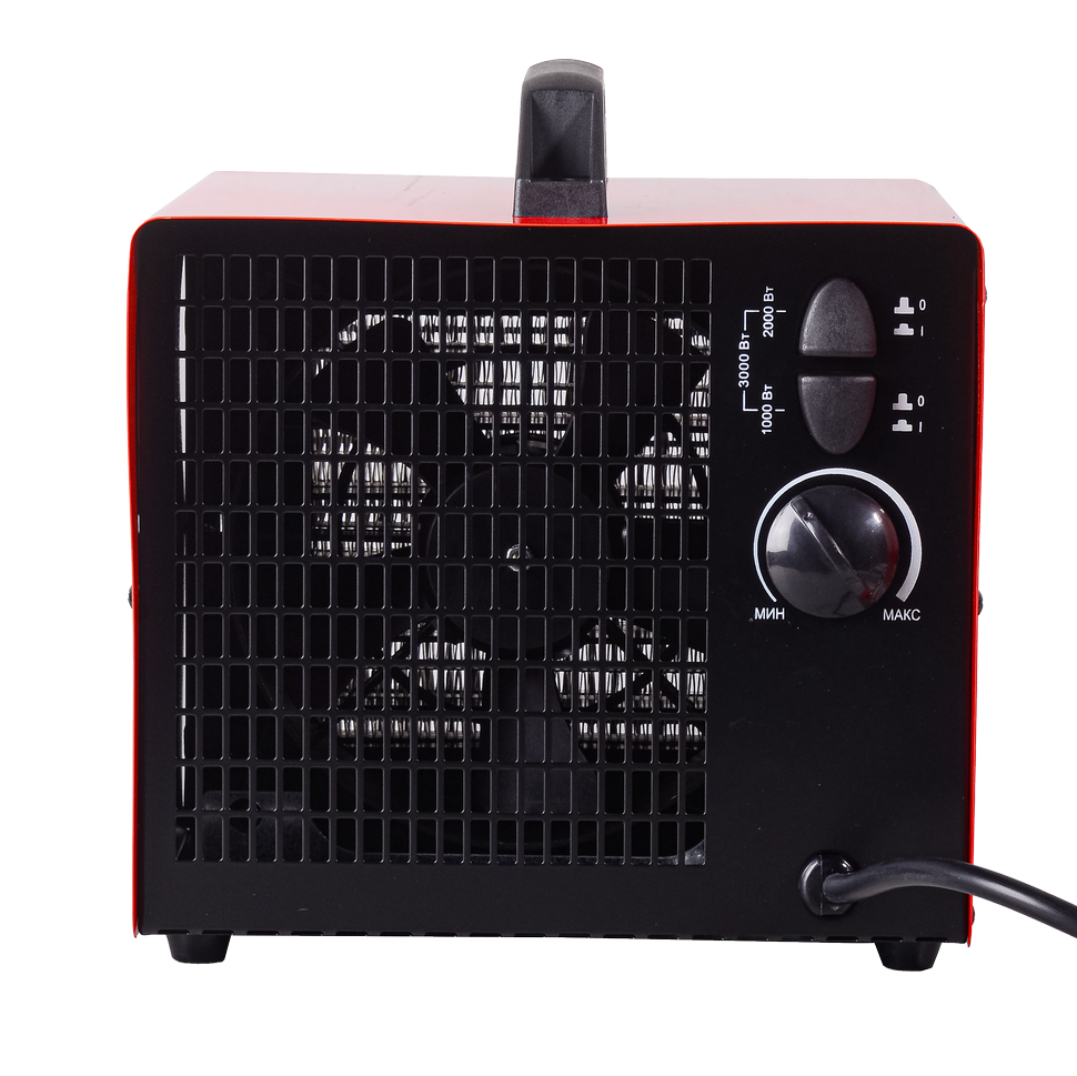 Технические характеристики включают максимальную потребляемую мощность в 3000 Вт. Устройство оснащено тремя режимами нагрева (1000 Вт, 2000 Вт и 3000 Вт), а также возможностью работы в качестве обычного вентилятора без нагрева, что позволяет гибко адаптироваться к различным условиям эксплуатации. Термостат, встроенный в конструкцию, обеспечивает поддержание выбранной температуры.